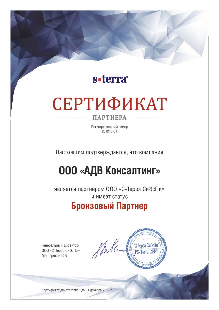 Компания «АДВ Консалтинг» выполнила требования для заключения партнёрства, включая наличие у компании лицензии ФСБ России на осуществление распространения шифровальных (криптографических) средств и штатных обученных специалистов с действующими сертификатами по курсу «Защита сетевой инфраструктуры на основе продуктов С-Терра».